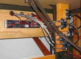 Underneath the table, there is a DC distribution bar ( seldom accessed) and a set of transmission line isolation and distribution switches. These can be reached while sitting at the desk.